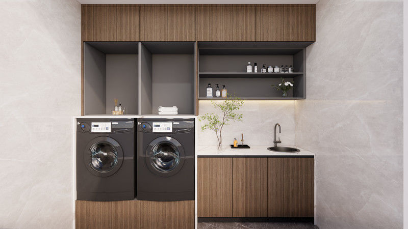 | การออกแบบ | บ้านเครื่องซักผ้าที่บูรณาการ พร้อมพื้นที่เก็บของเพิ่มเติมสําหรับระเบียงที่ไม่ยุ่งยาก |