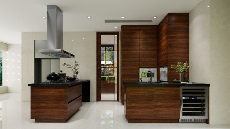 ตู้ครัวแบบชุดนี้ถูกสร้างขึ้นโดยใช้กลยุทธ์การทําปลายที่แตกต่างกัน: Walnut จับคู่กับโครงสร้างตู้สแตนเลสการผสมผสานนี้ทําให้ผู้ซื้อมีอารมณ์หรูหราที่อบอุ่นมากขึ้น โดยไม่สูญเสียความสะอาดและความทนทานของโครงการที่คาดหวังจากตู้เหล็กไร้ขัด.