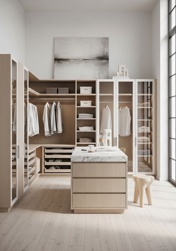 ห้องนอนหลัก Walk-in Closet / ห้องแต่งตัว / ระบบตู้เสื้อผ้าที่อยู่อาศัยที่หรูหรา |